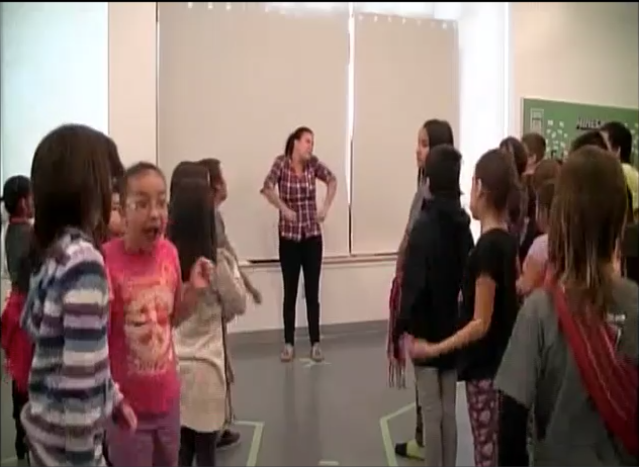 The video shows excerpts of a drama in which a multi-graded class, students in grades 1 to 5 and their teacher, work together. It focuses on the range of ways that the teacher functions throughout the drama, highlights the students' work and attempts to capture the spirit of their drama. It also includes interview segments in which the teacher provides direct links between the drama unfolding on the video and the processes and strategies described in the curriculum.