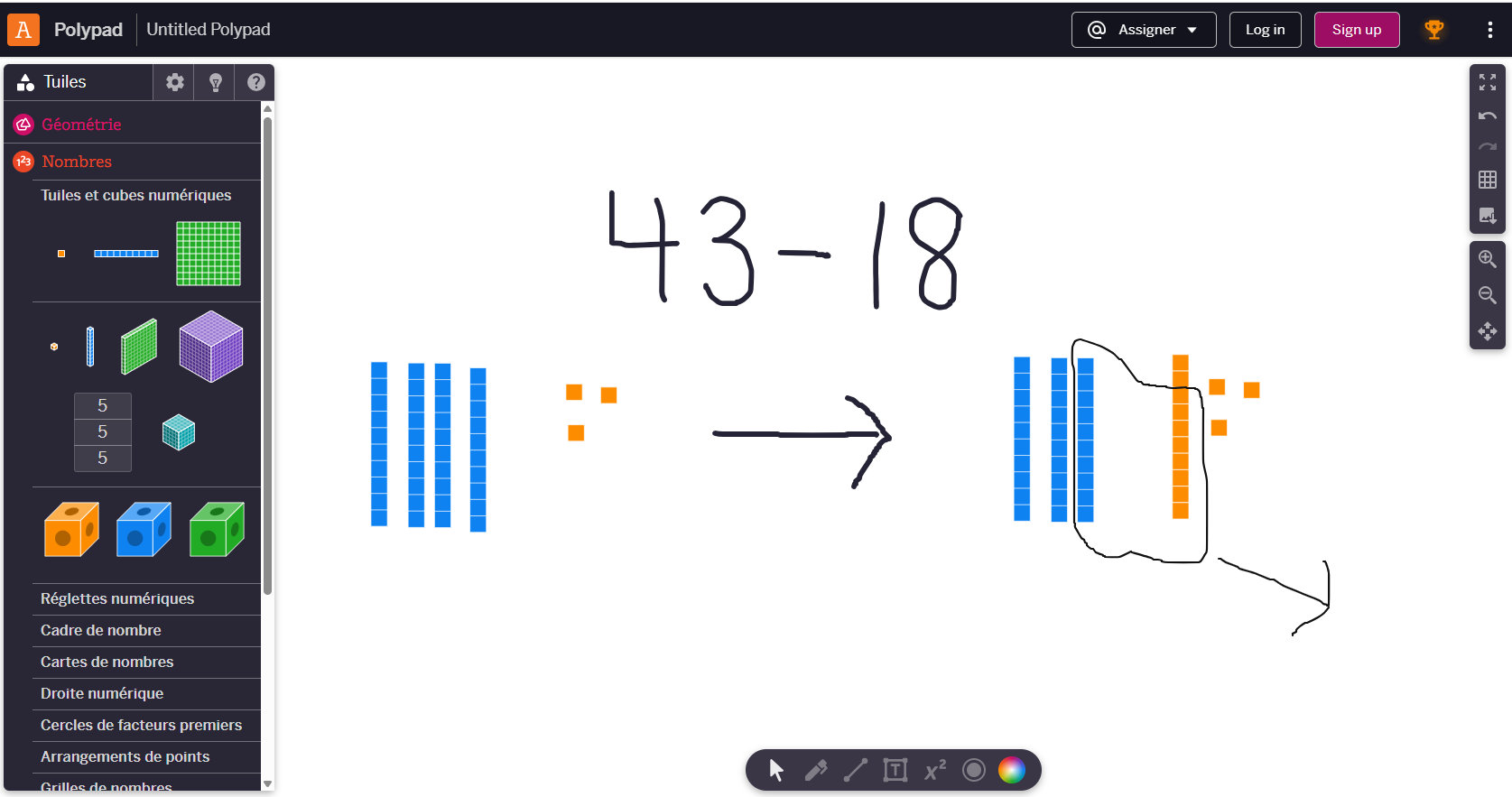 Polypad est une plateforme numérique interactive qui permet aux éducateurs de mathématiques de créer, manipuler et partager des représentations visuelles dynamiques (manipulatifs virtuels, dessins, simulations) pour soutenir l’exploration et la compréhension des concepts mathématiques.